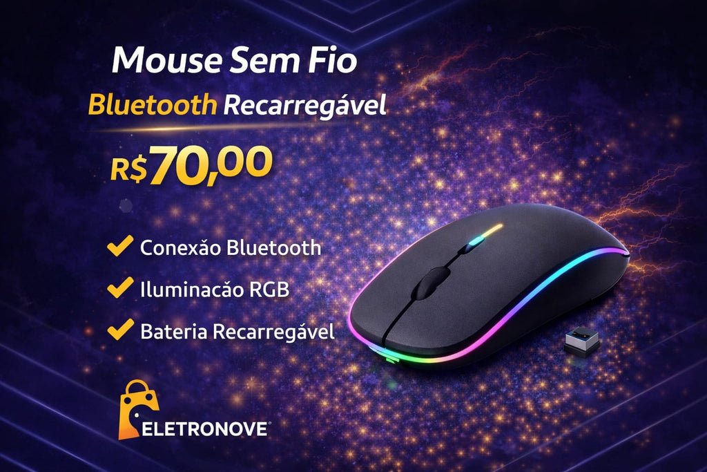 🚀 Garanta agora o seu Mouse Sem Fio Bluetooth Recarregável e transforme sua experiência de uso!